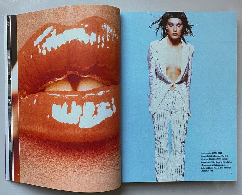Katie war von Anfang an mit Rankin und Jefferson bei „Dazed & Confused “ dabei, stürzte sich kopfüber in „The Face“ , brachte das POP- Magazin, das LOVE- Magazin und das Perfect- Magazin heraus. Wenn wir jemals ein Modebuch mit Tearsheets machen würden (und das haben wir), dann nur mit Katie. Am schwierigsten war es, alles zu kürzen. Es gibt einfach so viel Mode!